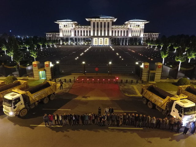 Cumhurbaşkanı Recep Tayyip Erdoğan, Cumhurbaşkanlığı Külliyesi'nde farklı meslek gruplarından esnafla iftar sofrasında bir araya geldi. Davete, Fetullahçı Terör Örgütü'nün (FETÖ) 15 Temmuz 2016'daki darbe girişiminde Ankara ve İstanbul'da önemli devlet kurumlarının önünü kamyonlarıyla kapatan şoförler de iştirak etti. İftar davetine araçlarıyla gelen şoförlerin, kamyonlarını Cumhurbaşkanlığı Külliyesi önüne park etmeleri, 15 Temmuz darbe girişimi sırasında yaşananları hatırlatan görüntüler ortaya çıkardı.