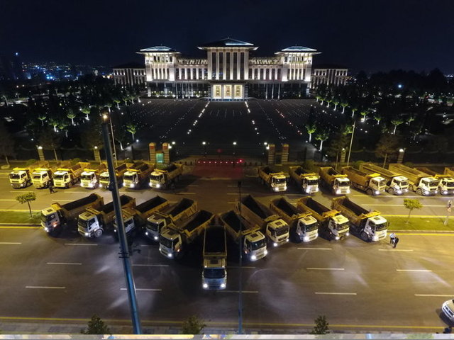 Cumhurbaşkanı Recep Tayyip Erdoğan, Cumhurbaşkanlığı Külliyesi'nde farklı meslek gruplarından esnafla iftar sofrasında bir araya geldi. Davete, Fetullahçı Terör Örgütü'nün (FETÖ) 15 Temmuz 2016'daki darbe girişiminde Ankara ve İstanbul'da önemli devlet kurumlarının önünü kamyonlarıyla kapatan şoförler de iştirak etti. İftar davetine araçlarıyla gelen şoförlerin, kamyonlarını Cumhurbaşkanlığı Külliyesi önüne park etmeleri, 15 Temmuz darbe girişimi sırasında yaşananları hatırlatan görüntüler ortaya çıkardı.