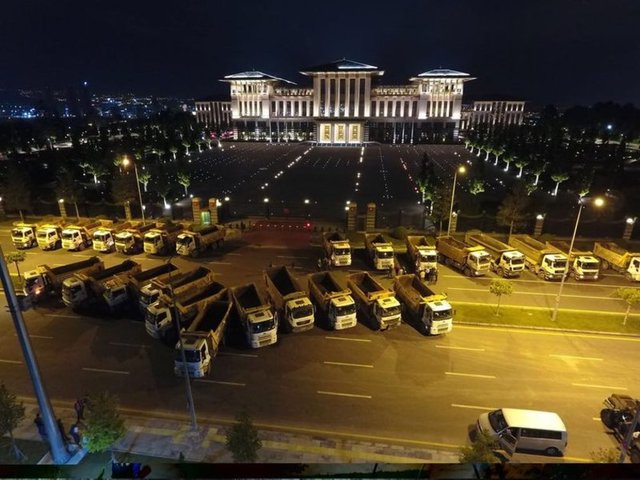 Cumhurbaşkanı Recep Tayyip Erdoğan, Cumhurbaşkanlığı Külliyesi'nde farklı meslek gruplarından esnafla iftar sofrasında bir araya geldi. Davete, Fetullahçı Terör Örgütü'nün (FETÖ) 15 Temmuz 2016'daki darbe girişiminde Ankara ve İstanbul'da önemli devlet kurumlarının önünü kamyonlarıyla kapatan şoförler de iştirak etti. İftar davetine araçlarıyla gelen şoförlerin, kamyonlarını Cumhurbaşkanlığı Külliyesi önüne park etmeleri, 15 Temmuz darbe girişimi sırasında yaşananları hatırlatan görüntüler ortaya çıkardı.