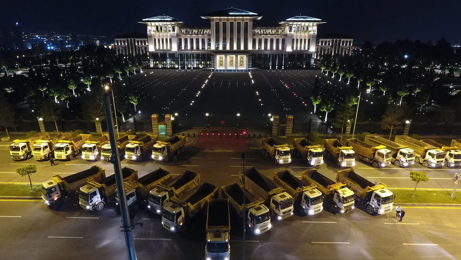 Cumhurbaşkanı Recep Tayyip Erdoğan, Cumhurbaşkanlığı Külliyesi'nde farklı meslek gruplarından esnafla iftar sofrasında bir araya geldi. Davete, Fetullahçı Terör Örgütü'nün (FETÖ) 15 Temmuz 2016'daki darbe girişiminde Ankara ve İstanbul'da önemli devlet kurumlarının önünü kamyonlarıyla kapatan şoförler de iştirak etti. İftar davetine araçlarıyla gelen şoförlerin, kamyonlarını Cumhurbaşkanlığı Külliyesi önüne park etmeleri, 15 Temmuz darbe girişimi sırasında yaşananları hatırlatan görüntüler ortaya çıkardı.