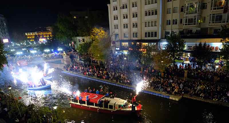 Işık gösterileri, meşaleler ve marşlar eşliğinde yapılan Fener Alayı’nda Eskişehir Büyükşehir Belediye Başkanı Prof. Dr. Yılmaz Büyükerşen, CHP Eskişehir Milletvekilleri Jale Nur Süllü ve Utku Çakırözer, Odunpazarı Belediye Başkanı Kazım Kurt, Han Belediye Başkanı Erdal Şanlı, Seyitgazi Belediye Başkanı Uğur Tepe, Eskişehirli gaziler ve belediye meclis üyeleri bot üzerinden vatandaşları selamlayarak bayramlarını kutladı.