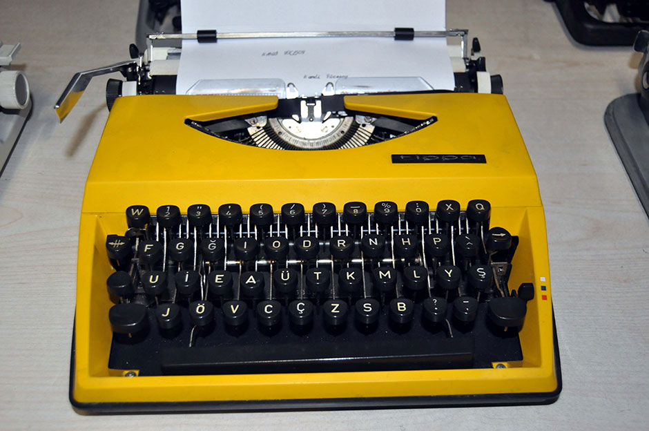 Eskişehir'de emekli bankacı 70 yaşındaki Hamdi Yücesoy, biri 125 yıllık 30 daktilodan oluşan koleksiyonunu, onarım yaptığı iş yerinde sergiliyor.