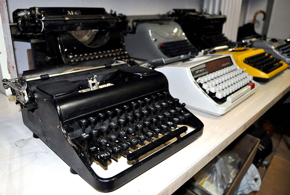 Eskişehir'de emekli bankacı 70 yaşındaki Hamdi Yücesoy, biri 125 yıllık 30 daktilodan oluşan koleksiyonunu, onarım yaptığı iş yerinde sergiliyor.