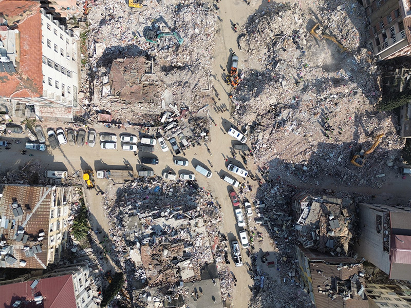 Kahramanmaraş merkezli deprem felaketinin 6'ncı gününde arama kurtarma çalışmalarının sürdüğü Hatay’da ortaya çıkan yıkım dron ile havadan görüntülendi.