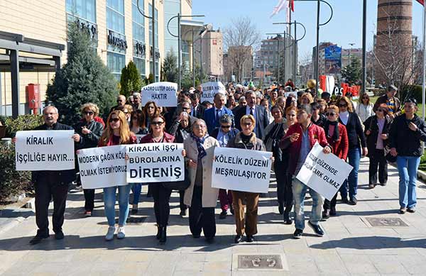 CHP Eskişehir İl Başkanlığı tarafından özel istihdam bürolarına ilişkin yasa tasarısı protesto eden DİSK üyelerine destek için yürüyüş düzenlendi.