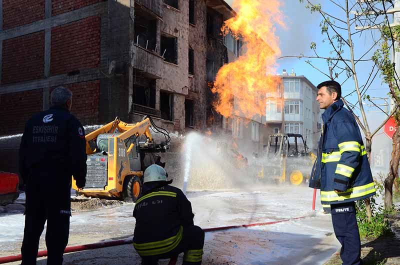 Tunalı Mahallesi Dingi Sokak'ta bir iş makinesinin patlattığı doğalgaz borusu Eskişehir'e panik yaşattı.