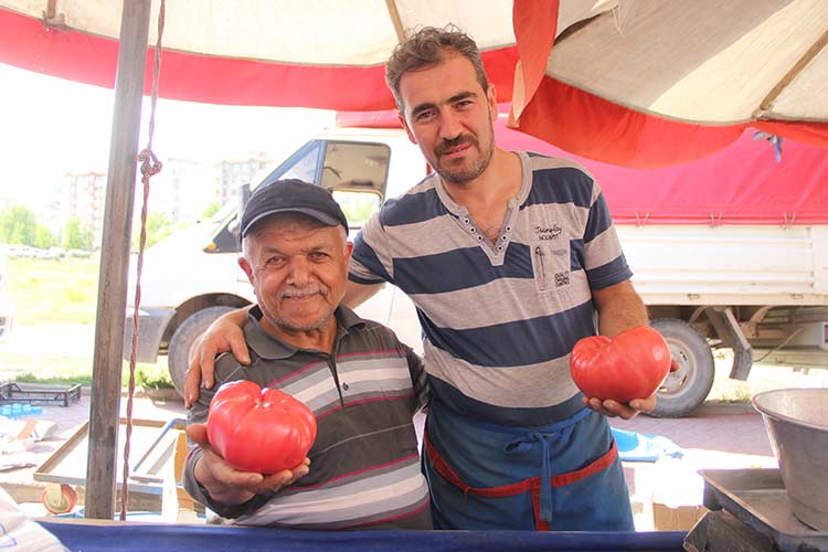Eskişehir'de 12 senedir pazarcılık yapan Ali Akbıyık, kendisine ait serada 1 kilo 200 gram ağırlığında domates üretti.