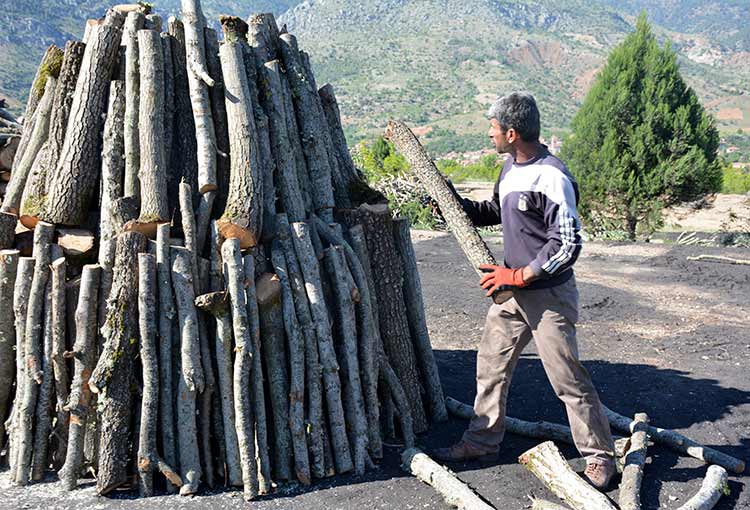 Eskişehir Mihalgazi ilçesinde iki kardeş, geçimlerini ormandan temin ettikleri meşe ağacından odun kömürü üreterek sağlıyor.
