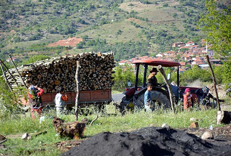 Eskişehir Mihalgazi ilçesinde iki kardeş, geçimlerini ormandan temin ettikleri meşe ağacından odun kömürü üreterek sağlıyor.