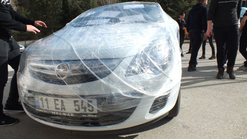 Bilecik'te, Yavuz Selim Mesleki ve Teknik Anadolu Lisesi öğrencileri, 42 yıllık meslek hayatını bitirerek emekliye ayrılan öğretmenlerini, yaptıkları şakayla uğurladı.