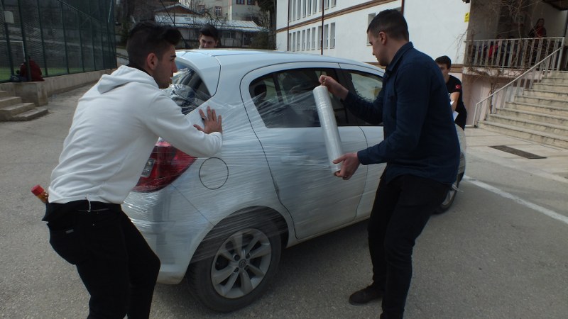 Bilecik'te, Yavuz Selim Mesleki ve Teknik Anadolu Lisesi öğrencileri, 42 yıllık meslek hayatını bitirerek emekliye ayrılan öğretmenlerini, yaptıkları şakayla uğurladı.
