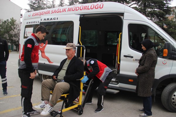Eskişehir’de vatandaşlık görevini yerine getirmek isteyen engelli vatandaşlar, İl Sağlık Müdürlüğü Engelli Birimi tarafından evlerinden alınıp servislerle taşınarak oy kullanmaları sağlandı.