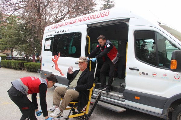 Eskişehir’de vatandaşlık görevini yerine getirmek isteyen engelli vatandaşlar, İl Sağlık Müdürlüğü Engelli Birimi tarafından evlerinden alınıp servislerle taşınarak oy kullanmaları sağlandı.