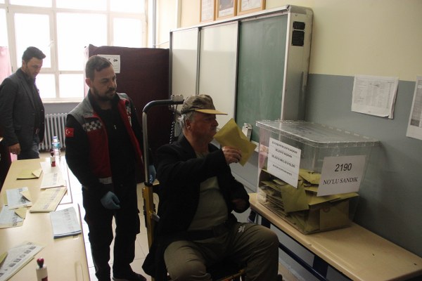 Engelli seçmenler sandığa taşındı