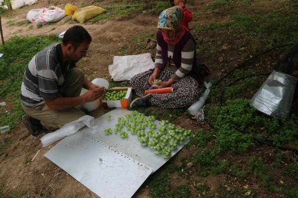 Mersin'in Mut ilçesinde örtü altına alınan erik bahçesinde ilk hasat yapıldı. Eriğin 80-90 gramlık paketi 80 TL'den satılıyor.