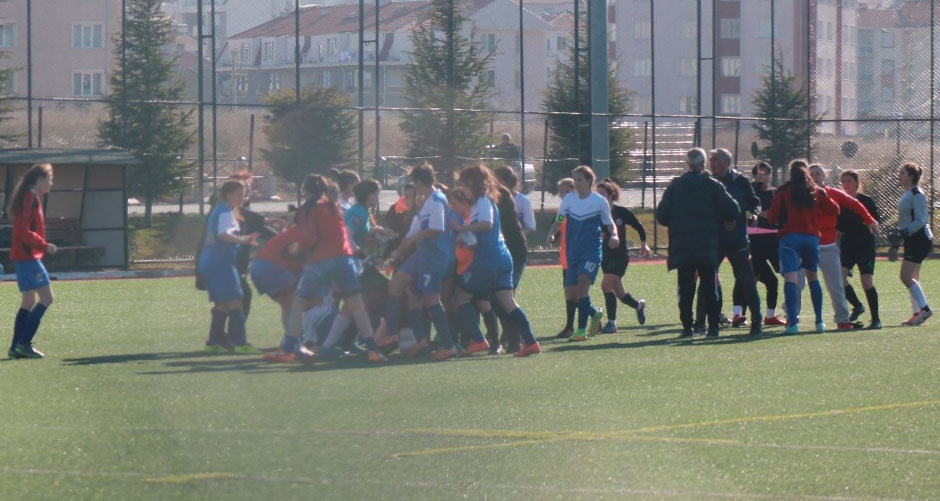 Eskişehir'de Kadınlar Futbol Ligi müsabakasının bitiş düdüğü ile birlikte erkek antrenör karşı takımın kadın oyuncusuna saldırdı.