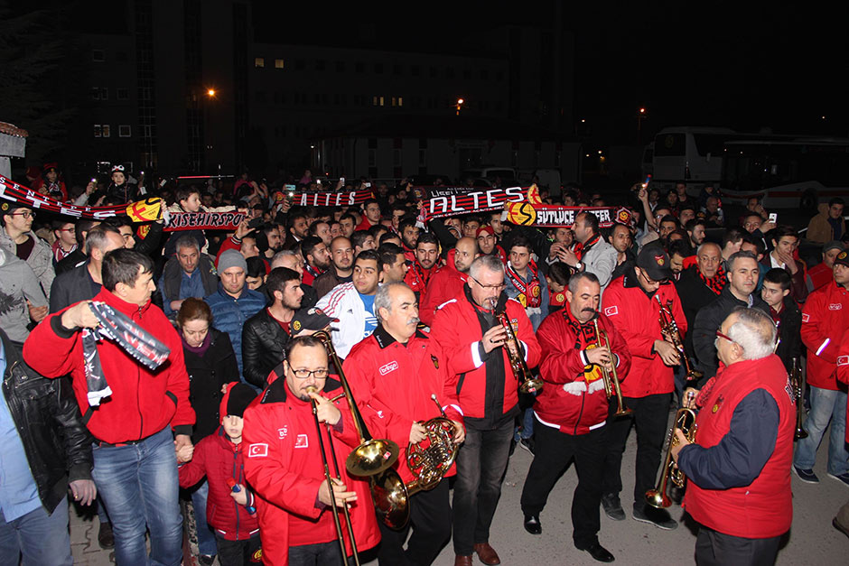 Yaklaşık bin Eskişehirspor taraftarı, tesislere gelerek yaktıkları meşalelerle şampiyonluk şarkıları söyledi.
