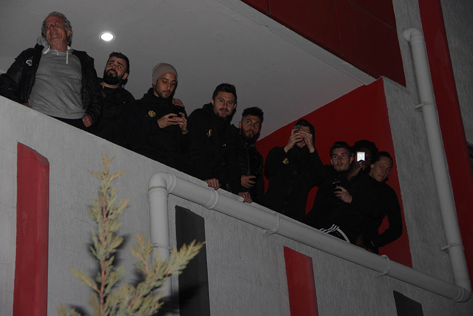 Yaklaşık bin Eskişehirspor taraftarı, tesislere gelerek yaktıkları meşalelerle şampiyonluk şarkıları söyledi.