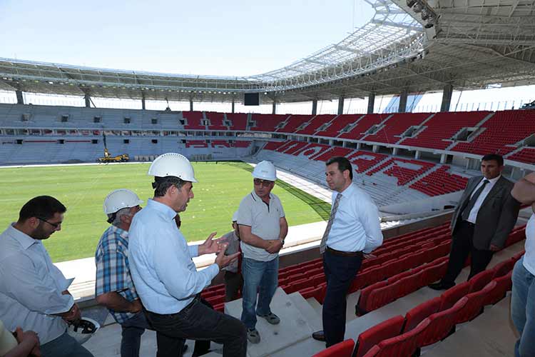 Eskişehir Valisi Azmi Çelik, 35 bin seyirci kapasiteli Eskişehirspor'un yeni stadının inşaatında incelemelerde bulundu.