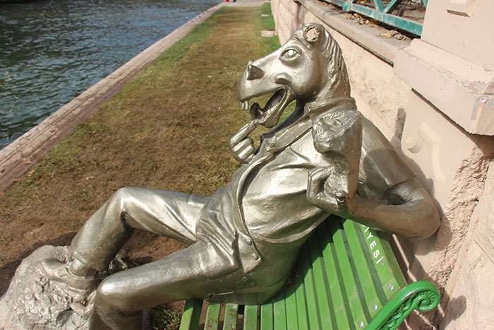 Eskişehir Büyükşehir Belediyesince kent merkezinden geçen Porsuk Çayı kıyısındaki yeşil alana yerleştirilen "çekirdek çitleyen eşek" heykelinin kulakları koparıldı.