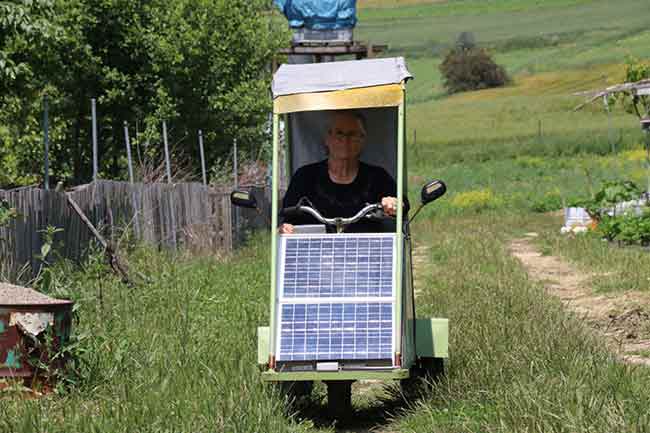 Eşinin bağ eviyle köy arasında daha kolay ulaşım sağlamasını isteyen Mehmet Çolak, ona güneş enerjisiyle çalışan elektrikli araba yaptı.