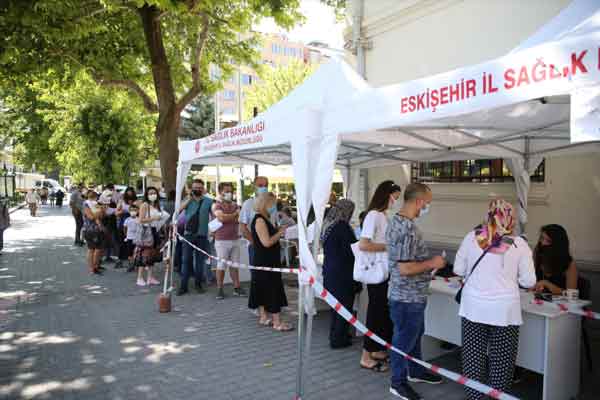 Eskişehir'de yeni tip koronavirüs (Kovid-19) salgınıyla mücadele kapsamında oluşturulan stantlarda verilen randevusuz aşı hizmeti ilgi görüyor.