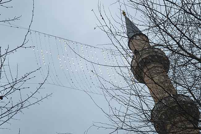Bu işlemler bittikten sonra da iki minare arasında gergin duran çelik halatlara mahyamızı asıyoruz