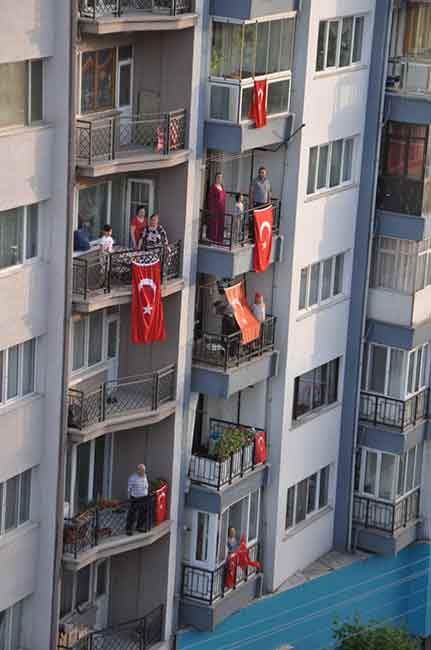 Eskişehir'de 19 Mayıs coşkusu saatler 19.19'u gösterdiğinde zirve yaptı. Başka Eskişehir Büyükşehir Belediye Başkanı Yılmaz Büyükerşen olmak üzere, Eskişehir halkı balkonlarından, pencerelerinden İstiklal Marşını okudu...