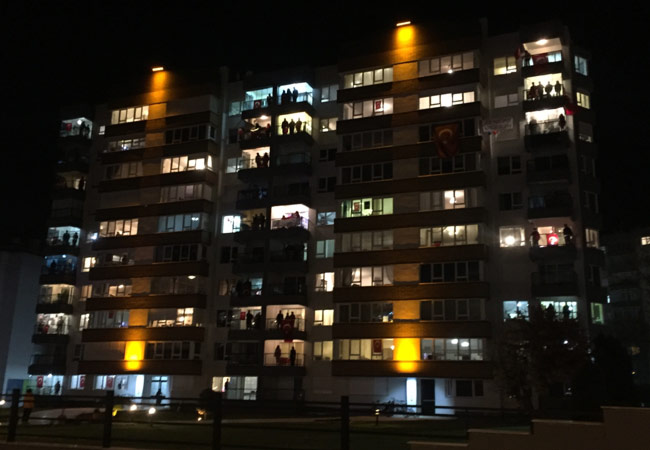 Duygularını dile getiren Mehmet Çıtak isimli bir vatandaş, “Aslında hazırlıksız yakalandık. Korona virüs nedeniyle pek hazırlık yapamadık. Sitemizin bahçesindeki çimlerimize 23 Nisan kutlu olsun yazdık. Yukarıdan çok güzel görünüyor. Onun yanında ışıklandırmalar yaparak komşularımızla seferber olduk. Hep birlikte coşkulu bir şekilde bayramımızı kutluyoruz. Çok büyük ve çok coşkulu bir duygu, çok mutlu oldum. 23 Nisan’ı bu sene 100. yılında kutladık, nice 100 yıllara” dedi.