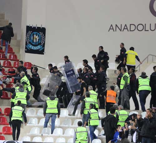 Karşılaşma öncesinde her iki takım seyircisi de tezahüratlarda bulunurken, maçın başlamasına kısa bir süre kala taraftarlar arasında arbede yaşandı.