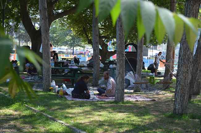 Eskişehir’de bayramın ilk gününde kurban ibadetini yerine getiren vatandaşlar, ikinci günde piknik alanlarına giderek mangal yaktı.