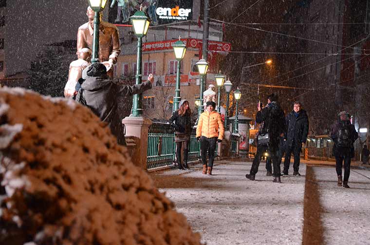 Eskişehir'de gece saatlerinden itibaren etkili olmaya başlayan kar yağışı, güzel görüntüler ortaya çıkardı.