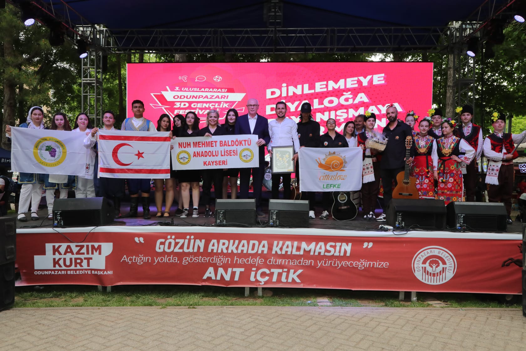 Eskişehir Odunpazarı Belediyesi tarafından Eskişehir Avrupa Birliği Derneği iş birliği ileKanlıkavak Parkında düzenlenen 3. Uluslararası Dinleme, Diyalog, Dayanışma (3D) Gençlik Festivali, sona erdi. Kapanış töreninde konuşan Başkan Kazım Kurt, festivalde emeği geçen ve festivale katılan herkese teşekkür etti.