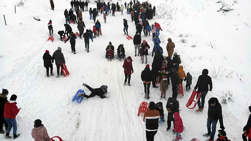 Ailesiyle birlikte kızakla kaymaya gelen Rıfat Çetin, “Ben küçükken burada yaşıyordum. O zamanlarda arkadaşlarla kendi aramızda gelip kayıyorduk. Büyüdükten sonra bizim için çok güzel bir anı oldu. İnşallah hatıralarımızda kalacak. Çok güzel eğleniyoruz” şeklinde konuştu.