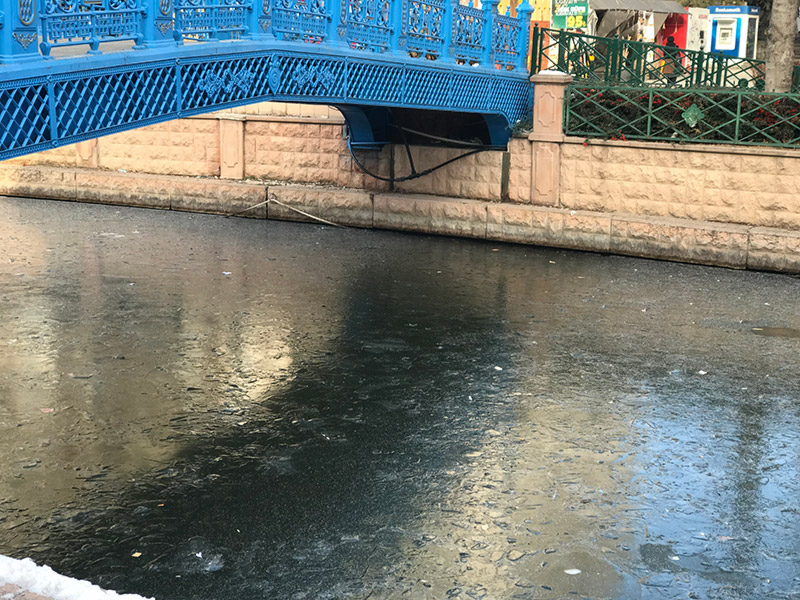 Eskişehir’de etkili olan soğuk hava, porsuk çayının yüzeyini yeniden dondurdu.