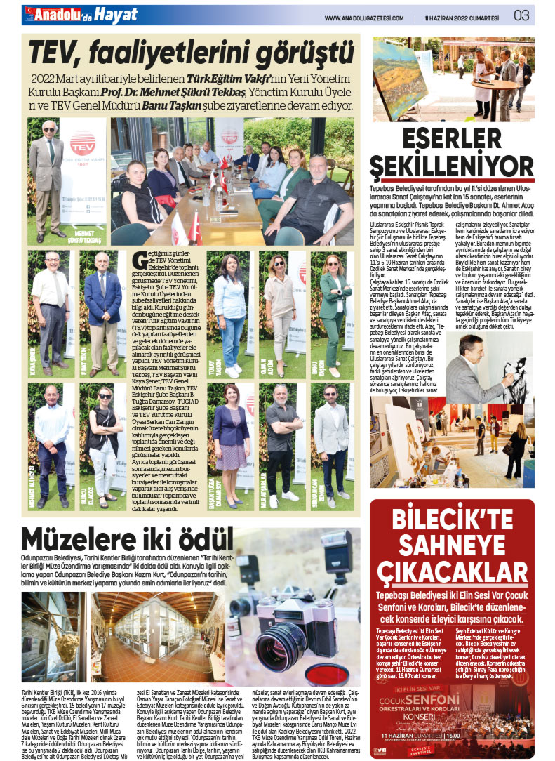 Eskişehir cemiyet hayatından son gelişmeler Anadolu Hayat'ta