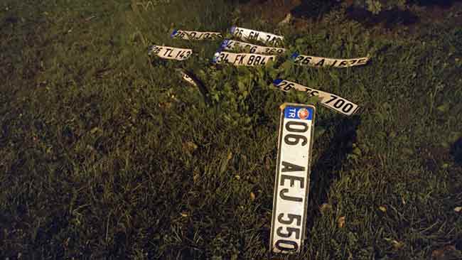 Eskişehir’de sağanak ve dolu yağışı hayatı felç etti. Göle dönen Kütahya Kavşağı mevkiinde araç sürücülerine zor anlar yaşarken, araçların düşen plakaları yol kenarına birikti.