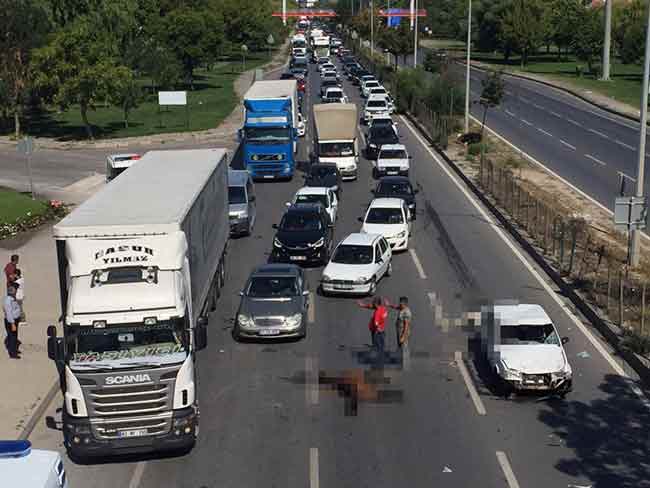 Eskişehir’de başıboş iki atın çevreyolundan karşıya geçmek istemesi sonrasında meydana gelen kazada iki at telef oldu.