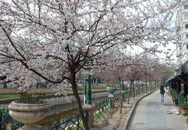 Şehrin birçok yerinde açan çiçekler çevredeki insanları doyumsuz manzaralarla mutlu ediyor.