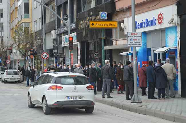 Eskişehir'de geçtiğimiz hafta perşembe 19.00’da başlayan ve bu sabah 05.00’te biten sokağa çıkma kısıtlamasının ardından dışarıya çıkan Eskişehirliler, ilk önce bankalara koştu.