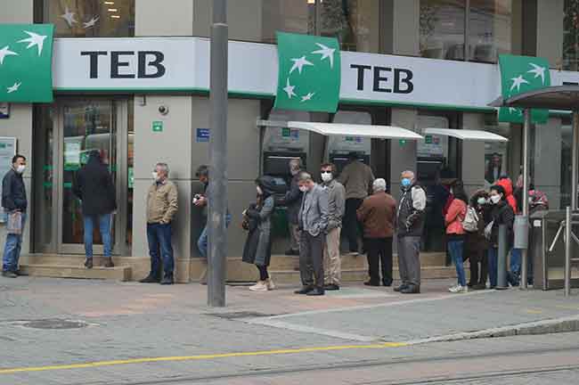 Eskişehir'de geçtiğimiz hafta perşembe 19.00’da başlayan ve bu sabah 05.00’te biten sokağa çıkma kısıtlamasının ardından dışarıya çıkan Eskişehirliler, ilk önce bankalara koştu.
