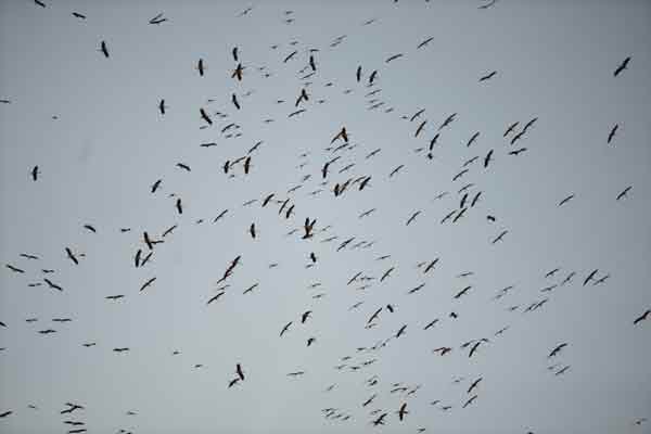 Eskişehir'de sonbahar mevsimi yaklaşırken sürüler halinde güneye doğru göç eden leylekler ilgiyle izlendi.