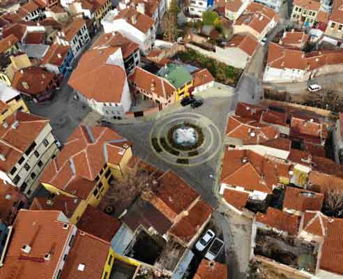 Eskişehir'de kısıtlamayla boş kalan tarihi evleriyle meşhur Odunpazarı, havadan görüntülendi.