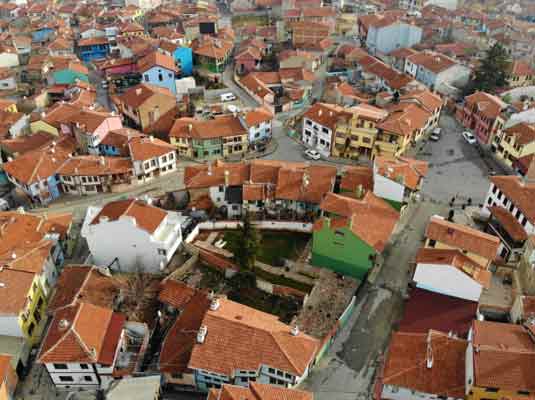 Eskişehir'de kısıtlamayla boş kalan tarihi evleriyle meşhur Odunpazarı, havadan görüntülendi.
