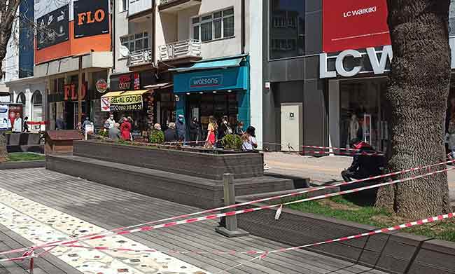 Koronavirüs vakalarındaki artışla dikkati çeken Eskişehir’de şeritlerle girilmesi yasaklanan parklara vatandaşların ısrarla girerek banklara oturması sürüyor.
