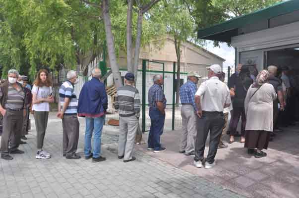 Piyasadan daha uygun fiyata şeker almak isteyen vatandaşlar, geçtiğimiz günlerde olduğu gibi satış ofisi önünde uzun kuyruklar oluşturmaya devam etti. Kuyrukta beklerken taburelerini yanında getiren yaşlı vatandaşlar vaziyeti gözler önüne serdi.