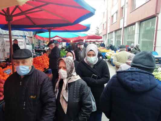 Eskişehir’de 80 saatlik sokağa çıkma yasağının ardından vatandaşlar alışveriş yapmak için kurulan semt pazarına akın ederken sosyal mesafe ve maske kurallarının ihlal edildiği anlar fotoğraf karelerine yansıdı.