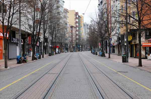 Eskişehir'de kısıtlama günleri dışında yaya ve araç trafiğinin yoğun olduğu cadde ve sokaklar ile Porsuk Bulvarında sessizlik var.