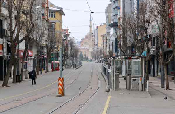 Eskişehir'de kısıtlama günleri dışında yaya ve araç trafiğinin yoğun olduğu cadde ve sokaklar ile Porsuk Bulvarında sessizlik var.