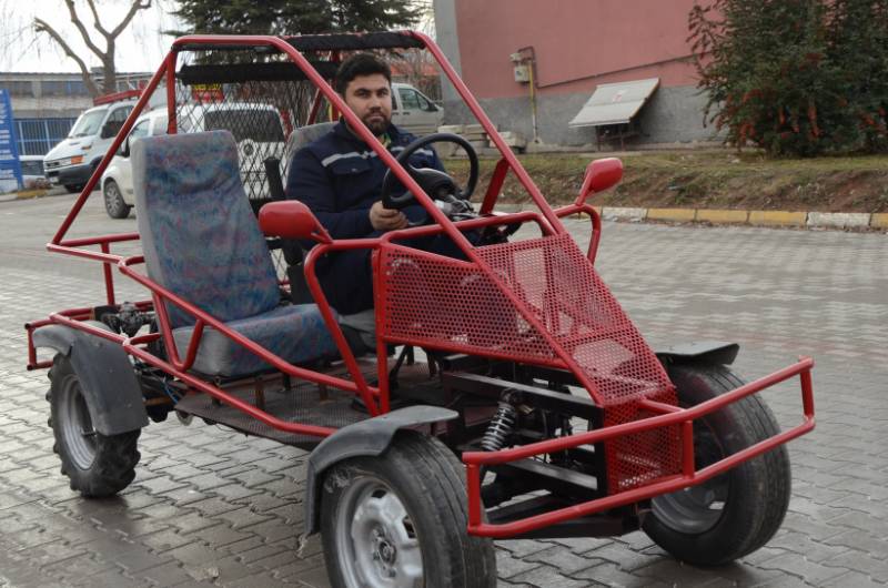 Teksan Sanayi Sitesi'nde iş yeri bulunan motor ustası Mustafa Karadağ, elde ettiği çıkma parçalardan 1 litre yakıt ile 50 ila 60 kilometre arasında yol yapabilen spor bir araç üretti.